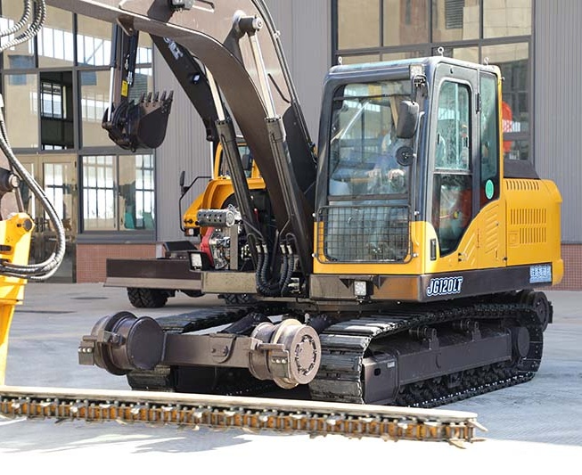 JG120LT 12 टन का भारी-भरकम रेलवे गिट्टी साफ करने वाला उत्खनन यंत्र, पटरी रखरखाव के लिए उपयुक्त है।